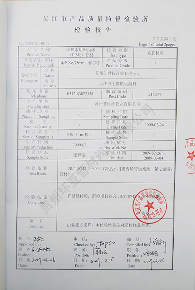 冷熱水用聚丙烯(PP-R管件)管件質(zhì)檢報(bào)告