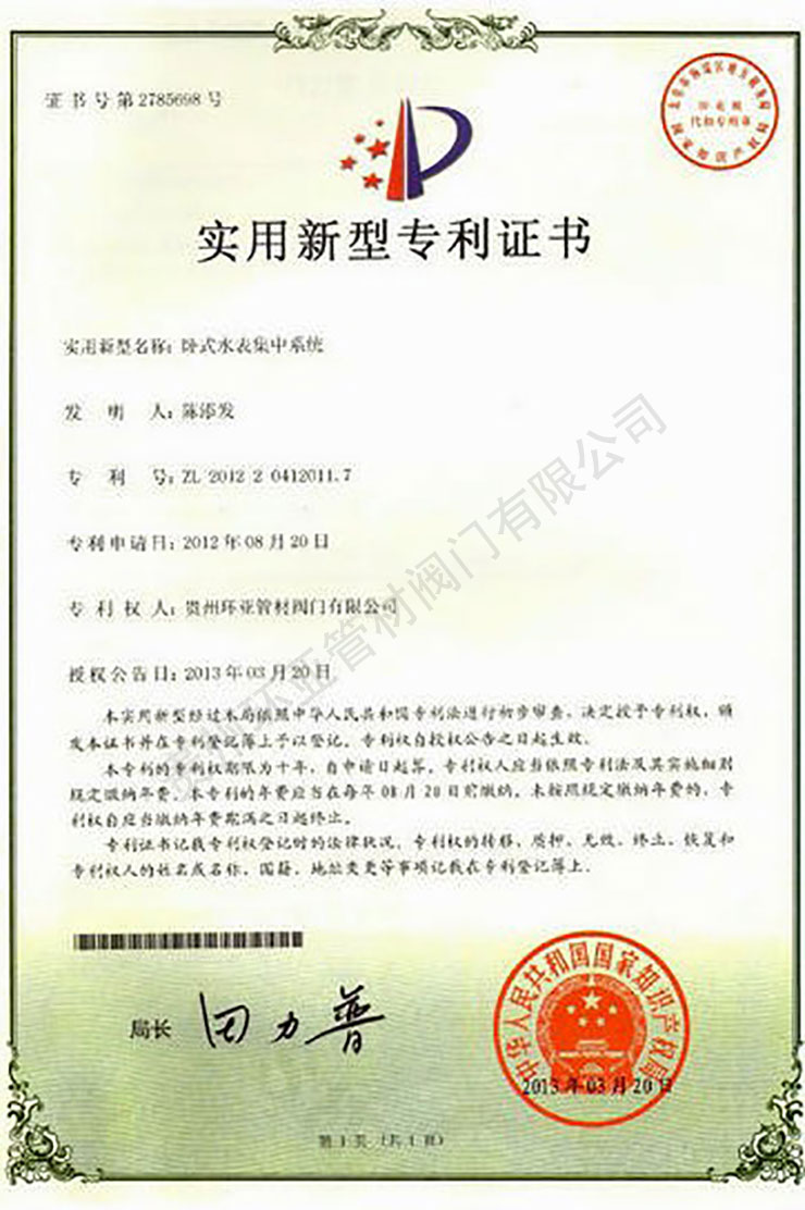 臥式水表集中系統(tǒng) 專利證書