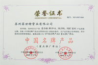 中國名牌產(chǎn)品 榮譽(yù)證書